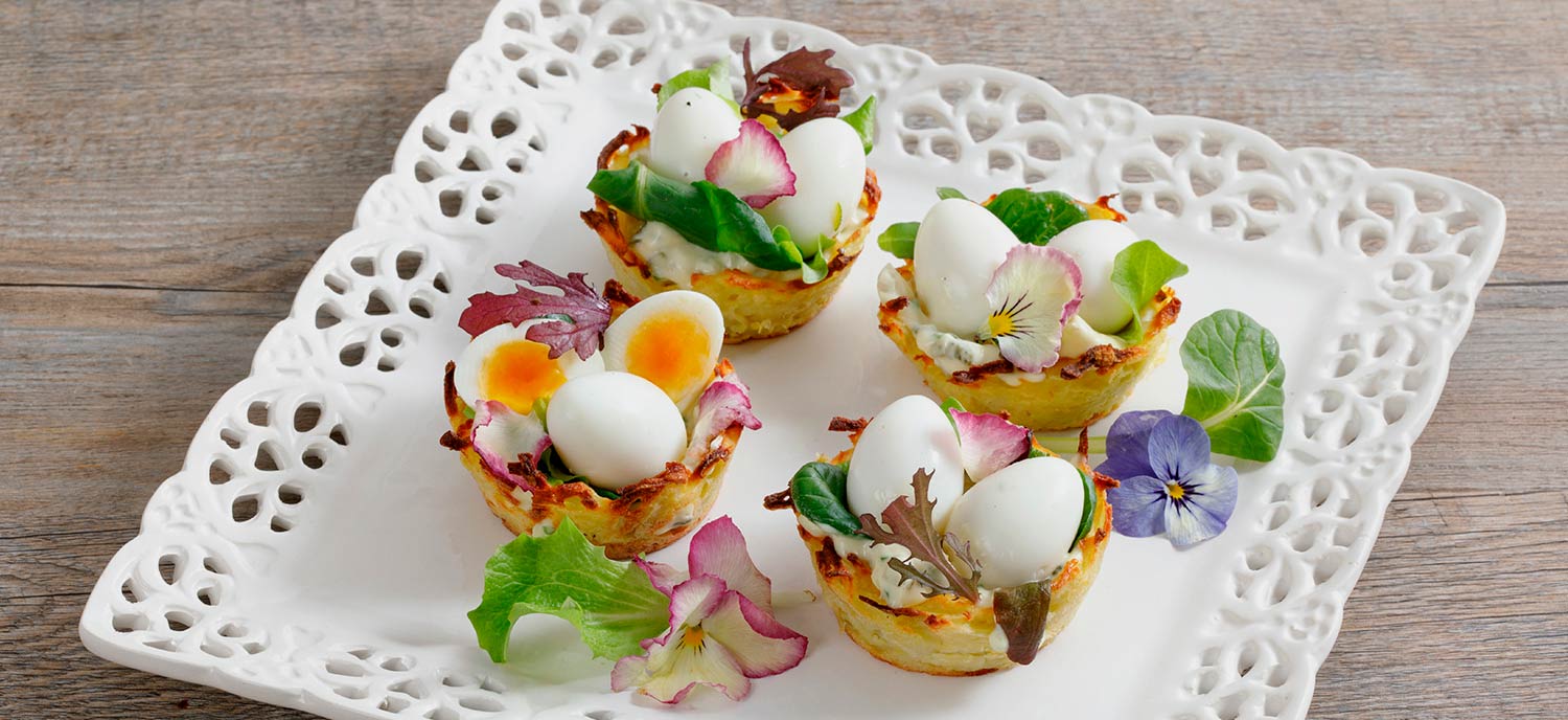 Potato baskets with quails’ eggs and Zucchi Organic Sunflower Seed Oil tartar sauce