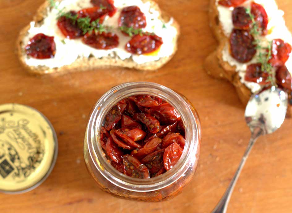 Sweet and sour date tomato confit with cider vinegar and Zucchi extra virgin olive oil