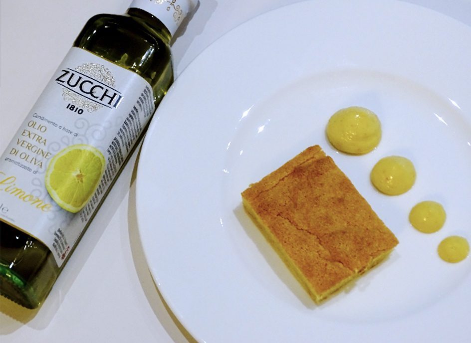 Whisk the eggs with the sugar (120 g) then add the powdered products and finally the Zucchi lemon-flavoured evo oil.