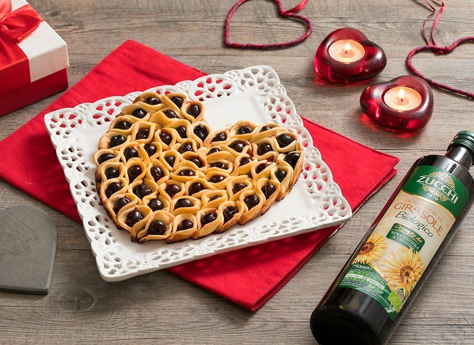 Cherry heart with brisée pastry made with Zucchi Organic sunflower seed oil