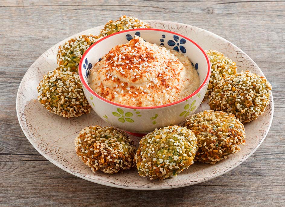 Felafel with hummus with Zucchi sesame seed oil