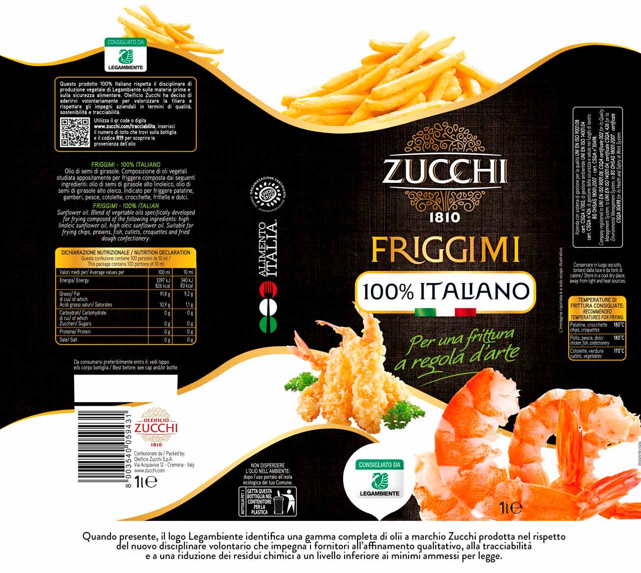 Dalla miscelazione dell’olio di semi girasole e girasole alto oleico 100% italiani, nasce questo blend appositamente studiato per fritture leggere, dorate e croccanti con alta digeribilità. Non contiene olio di palma.