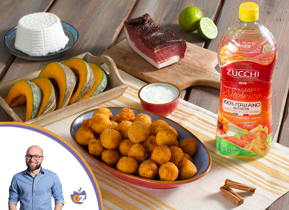 I Bocconcini di zucca, ricotta e speck sono un antipasto autunnale sfizioso, realizzate con un impasto dai sapori stuzzicanti. Fuori una croccante panatura, immancabile in un buon fritto, realizzata con l'olio di semi di girasole altoleico 100% Italiano Zucchi.