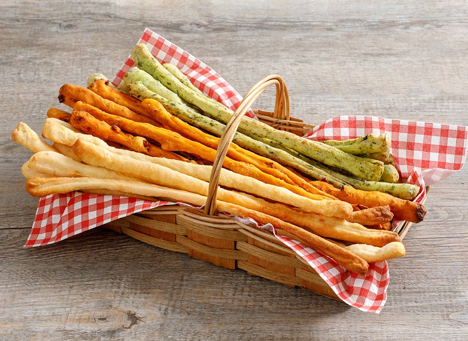 Grissini all’olio Extravergine d’oliva aromatizzati (parmigiano, basilico e pinoli, pomodori secchi)