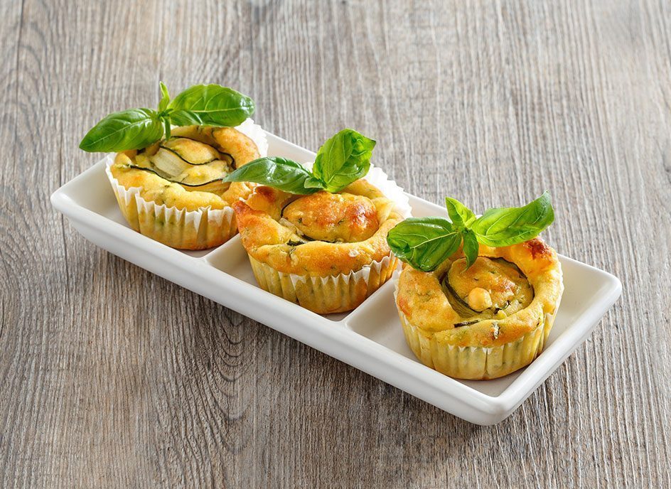 In una ciotola mescolate assieme tutti gli ingredienti secchi: farina, lievito, sale e parmigiano. In un'altra ciotola mescolate gli ingredienti liquidi: olio di semi di mais Zucchi, latte, uova, ricotta. Mescolate i due composti e aggiungete le zucchine saltate e la fontina tagliata a dadini. Completate con un pizzico di sale, una grattugiata di scorza di limone e il basilico tagliato finemente. Mescolate bene e versate l'impasto in pirottini o stampini da muffin riempiendoli per 3⁄4. A questo punto decorate la superficie disponendo una fetta di zucchina avvolta a spirale su ogni muffin.