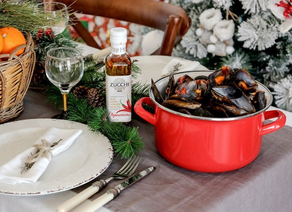 Zuppa di cozze con olio aromatizzato al peperoncino Zucchi