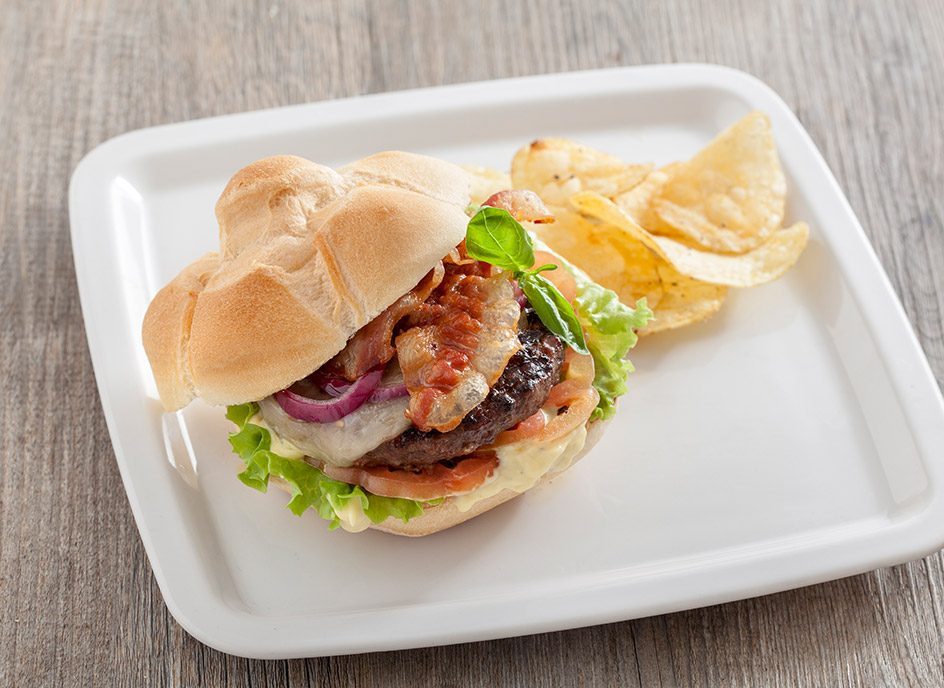 Hamburger all’italiana con maionese con olio di semi di girasole e olio evo al pesto.