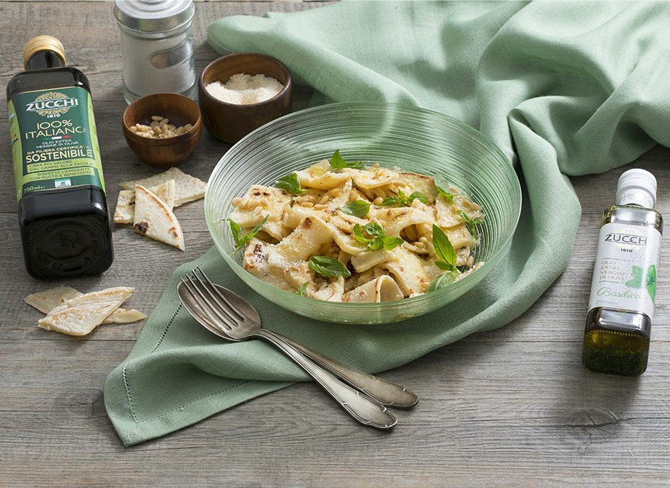 Testaroli con olio extra vergine d’oliva aromatizzato al basilico Zucchi