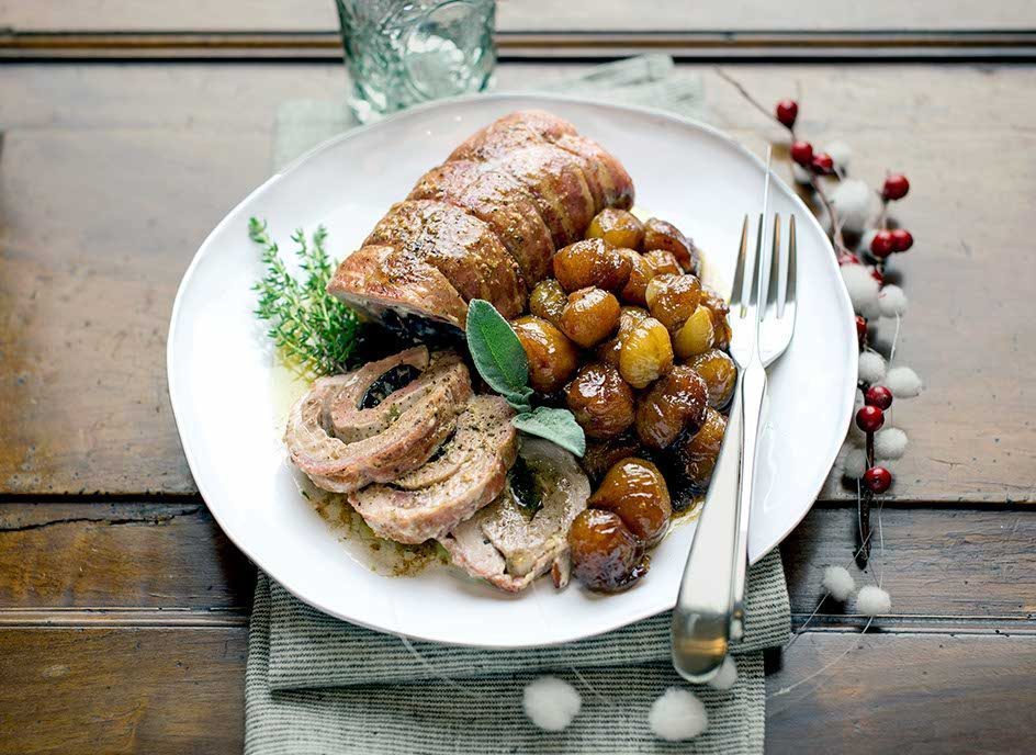 Arrostino di maiale alle prugne con cipolline in agrodolce