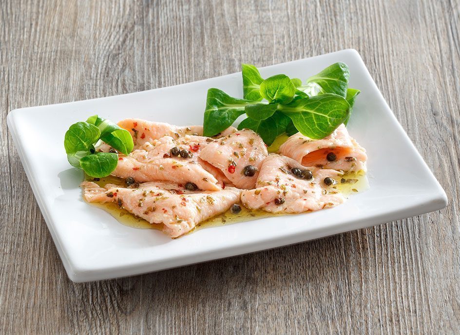 Salmone marinato con olio extra vergine d’oliva 100% italiano sostenibile Zucchi