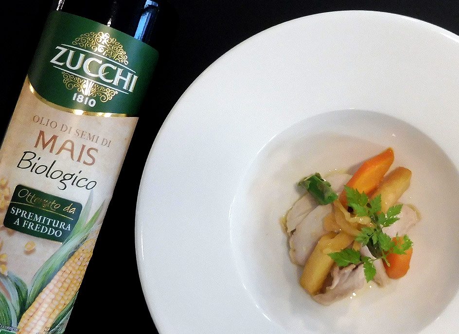 Tornire le verdure e cuocerle in una casseruola con burro, zucchero e se necessario pochissima acqua. Una volta cotte, sfumare con il succo di limone e pochissimo olio extra vergine di oliva aromatizzato al peperoncino Zucchi.